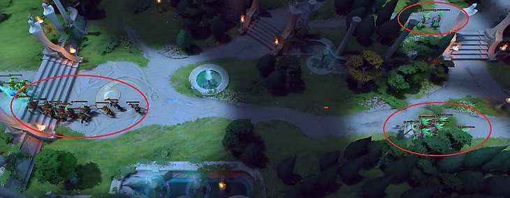 4. Блок нейтральных лагерей. Если Чен своими крипами накрывает одну область на карте (к примеру, маленький лес или треугольник), то Энты такого Фуриона мешают по всей карте.