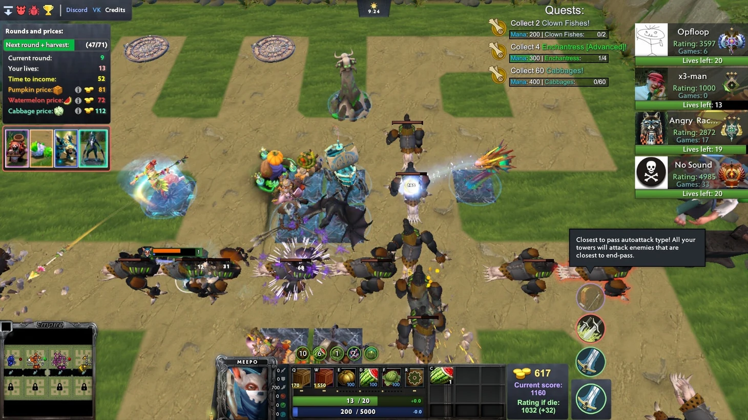 Во-первых, из-за дополнительных элементов игры (садоводство, рыбалка, магазин) у игрока нет свободного времени, где ему остается лишь наблюдать за смертью крипов. Вы постоянно будете вовлечены в процесс: нужно отслеживать цены на товары, следить за башнями, ловить рыбу, думать о следующих баффах. В общем, TD перестает быть скучной игрой.