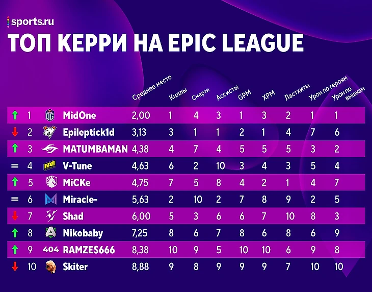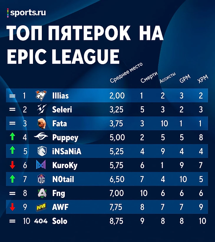 Прогрессируют в целом Team Secret: MATUMBAMAN, YapzOr и Puppey поднялись минимум на 2 строчки в рейтинге, а Nisha остался в топ-3. Разочаровывает пока только Zai, выпавший из пятерки лучших.