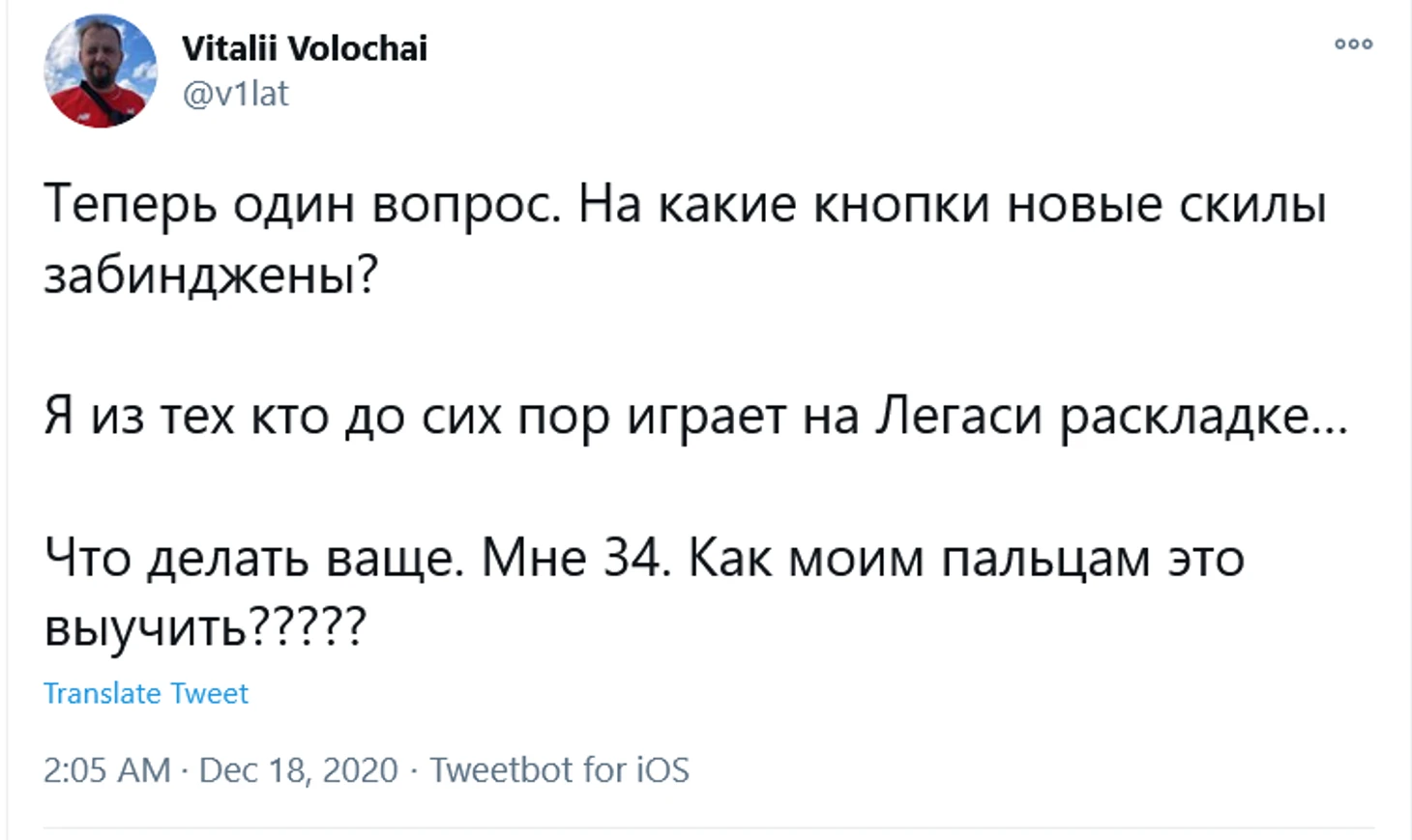 Вилат интересовался, как ему теперь играть на Legacy-раскладке с новыми кнопками.