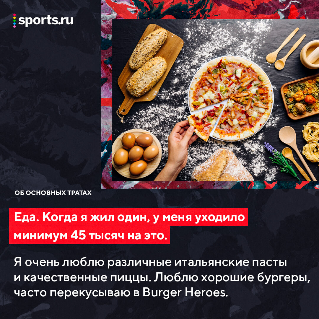 – Еда. У меня много уходит на нее денег. Когда я жил один, у меня уходило минимум 45 тысяч на это.