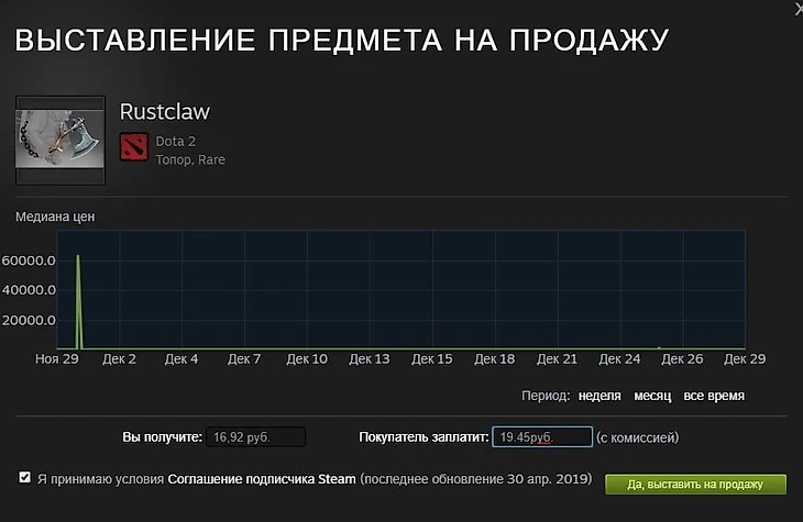 Можно смело для быстрой продажи ставить 19.45 р. Вписываем в строку «покупатель заплатит». И жмем «Да, выставить на продажу». Вот и все (правда, иногда требуется подтверждение сделки в мобильном приложении).