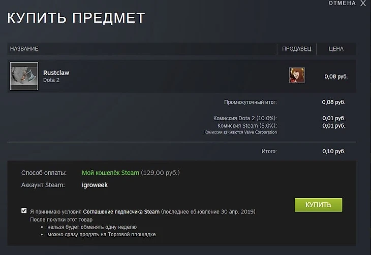 Steam отправит вам сообщение (и уведомление по электронной почте, если вы их не отключили), как только кто-то купит товар.