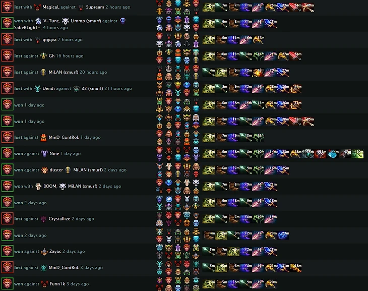 После появления Aghanim’s Scepter, солдат от которого тоже вешает дебаффы от Witch Blade и Orb of Corrosion, игра обычно заканчивается. Если этого не происходит, то Себ докупает артефакты, которые подходят солдатам Wukong’s Command: Daedalus, Eye of Skadi, Battle Fury против иллюзионистов.