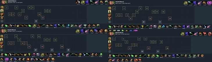 В зависимости от силы оппонентов Себ готов приступать к давлению на линии либо с третьего уровня, либо с появления у него Orb of Corrosion. В среднем Орба прилетает на 5 минуте, но иногда линия настолько неприятная, что приходится брать Boots of Speed еще до OoC.