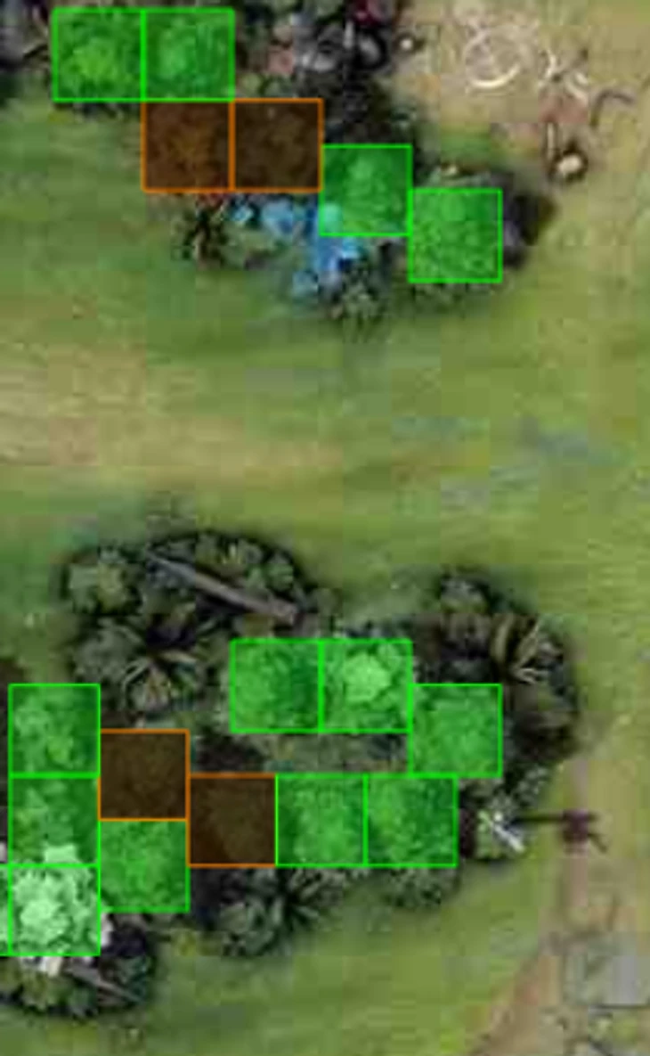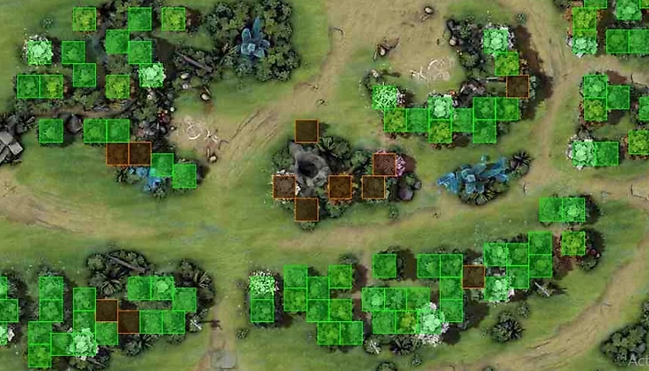 С одиночными деревьями все понятно: они дают свободное перемещение саппорту и позволяют делать пул большого лагеря на тир-1 башню. Куда интереснее вот эти нежелательные елки у Radiant: