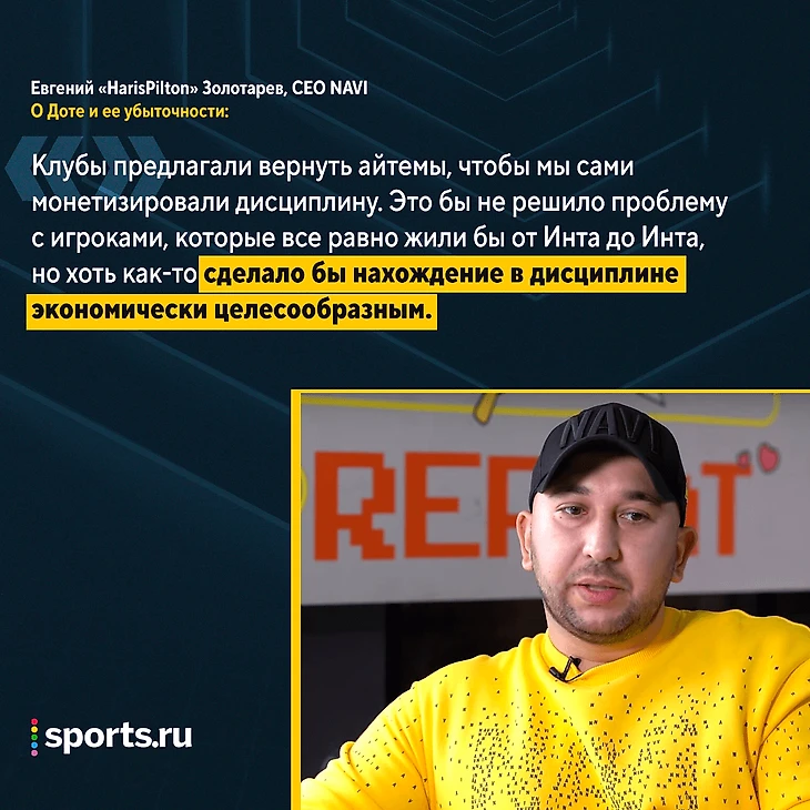 – Нет. И Valve не хочет убирать TI как таковой, потому что это ее уникальный проект. Я лично на встрече с Valve говорил: просто сделайте распределение призового, где, например, 30% обязательно идут клубу, а не игрокам. Но это для них не вариант. Клубы предлагали вернуть айтемы, чтобы таким образом мы могли сами монетезировать дисциплину. Это бы не решило проблему с игроками, которые все равно жили были бы от Инта до Инта, но это хоть как-то бы сделало нахождение в дисциплине экономически целесообразным. Но как видите.