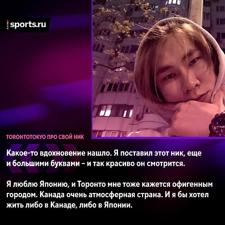 А TORONTOTOKYO – это просто какое-то вдохновение нашло. Я поставил этот ник, еще и большими буквами – и так красиво он смотрится. Очевидно, что я люблю Японию, и Торонто мне тоже кажется офигенным городом. Канада очень атмосферная страна. И я бы хотел жить либо в Канаде, либо в Японии.