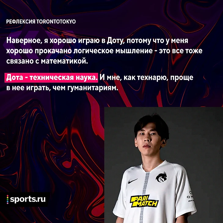 – Я вообще любитель поменять ники. Поставить крутой ник или суперскую аватарку – это меня вдохновляет. Сначала был Mio, но мне показалось, что это не такой хайповый вариант. Потом мне пришло в голову TORONTOTOKYO. Я сначала его просто по фану поставил в Доте, чтобы паблики играть. А потом смотрю – а ник-то кайфовый, и друзья говорят, что прикольный. И в итоге решил его оставить.