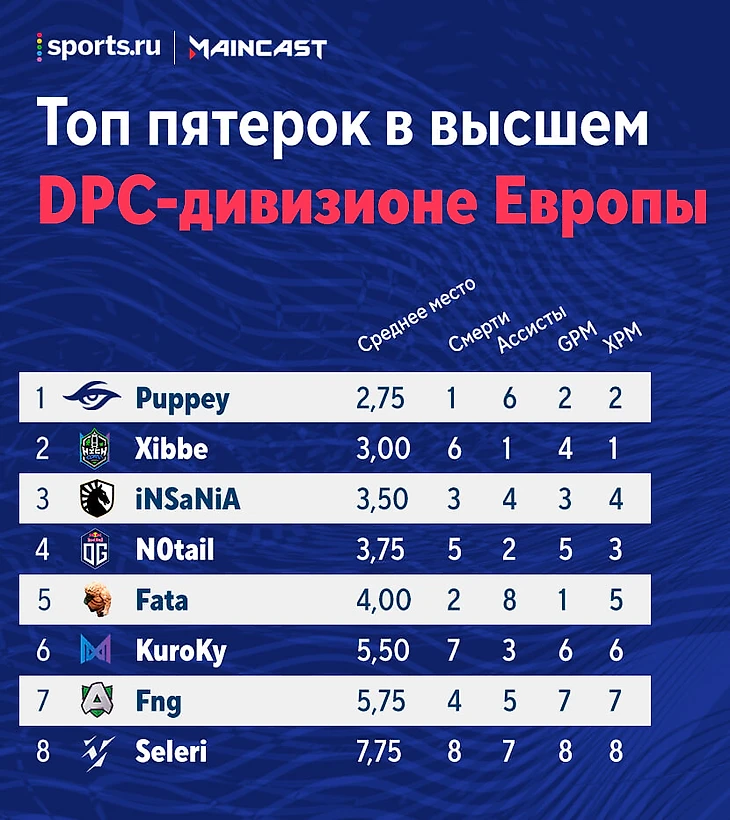 Рейтинг игроков высшего дивизиона Европы после первой недели: все лучшие – из OG и Secret, Fng – предпоследний