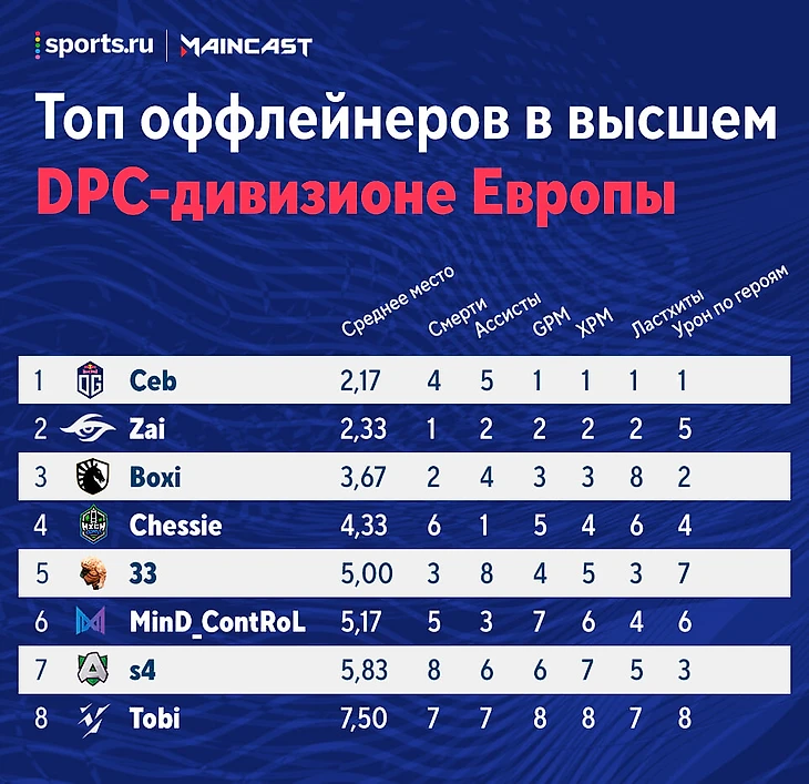 Наш блог внимательно следит за СНГ-лигами и высшим дивизионом Европы, поэтому подписывайтесь: по итогам каждой недели мы будем публиковать обновления! А теперь давайте посмотрим, как проявили себя лучшие игроки европейской Дота-сцены.