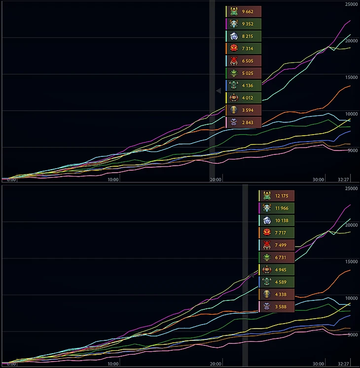 Важно заметить, что Мидас с Тревелами не дают моментальное богатство. При более-менее равной игре у Мидвана и керри соперника, малазиец догоняет нетворс купившего более статовые предметы оппонента примерно к 22-й минуте.