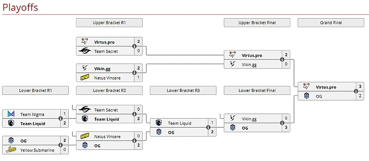 В середине декабря прошел EPIC League, на котором новоиспеченные Virtus Pro победили Secret, Vikin.gg и OG и стали чемпионами, забрав с собой 200,000$. Этот турнир стал вишенкой на торте и укрепил позиции VP в борьбе за позиции на тир-1 вершине.