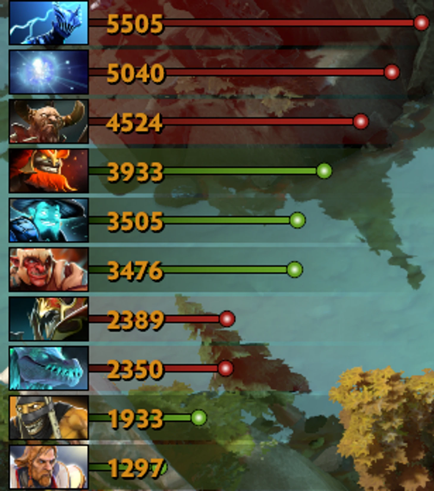 На шестой минуте у Виспа с Марсом был одинаковый нетворс (около 2900), но с Доминатором Ио в лесу довел общую ценность до 5к на 10-й минуте. Тролль на 6-й минуте несильно отставал от Кентавра, но вскоре у него начались проблемы: Разор с нетворсом 3600 и 7-м уровнем посетил нижнюю линию. Шторм в этот момент имел 2100 и 5-й уровень, из-за чего Омник часто оказывался в миде – в этот момент керри LBZS били Виверна и Кентавр. К концу лейнинга Elephant вели 5к золота, а таблица нетворсов выглядела так: