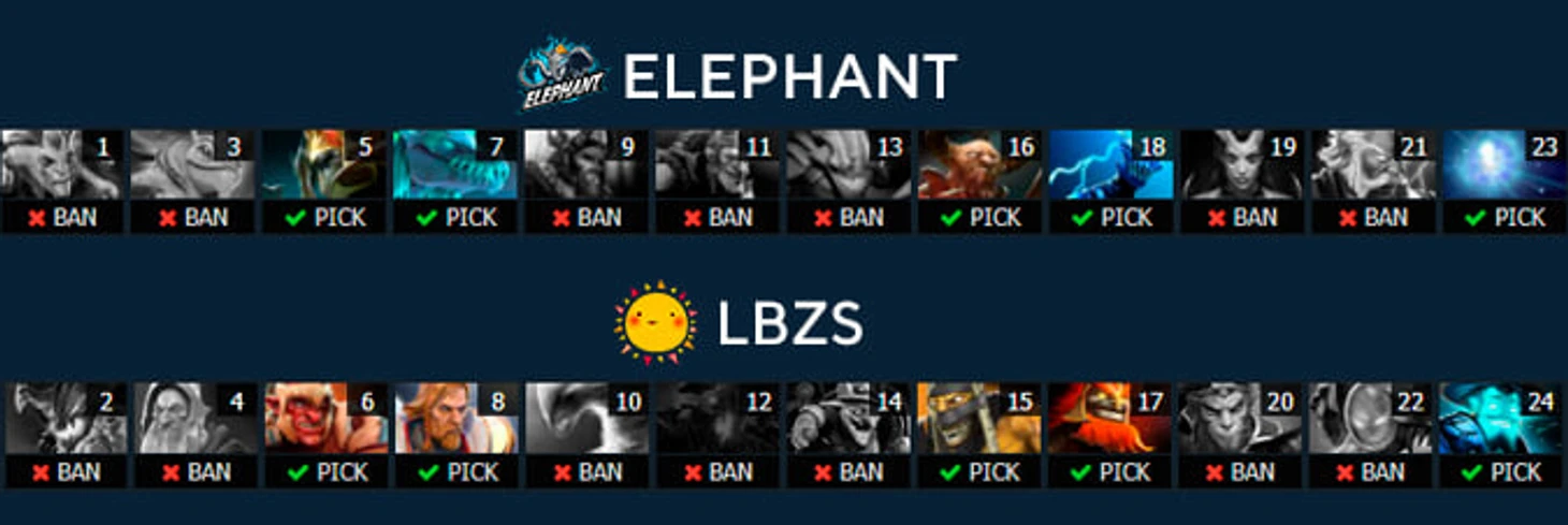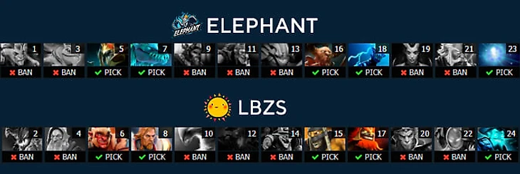 В итоге LBZS заметно отстают по командному темпу. Каждый герой Elephant раскрывается раньше, и останавливать Виспа и Разора под Кентавром и с сейвом в виде Виверны оппонентам просто нечем. Ластпик Шторма – ошибка, но и до этого драфт выглядел печально.