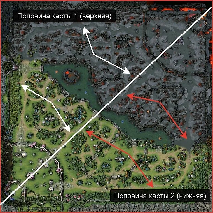На рейтингах вплоть до 5к (а иногда и выше) игроки делят карту на сторону Света и сторону Тьмы. Это огромная ошибка: на самом деле граница проходит по центральной линии.