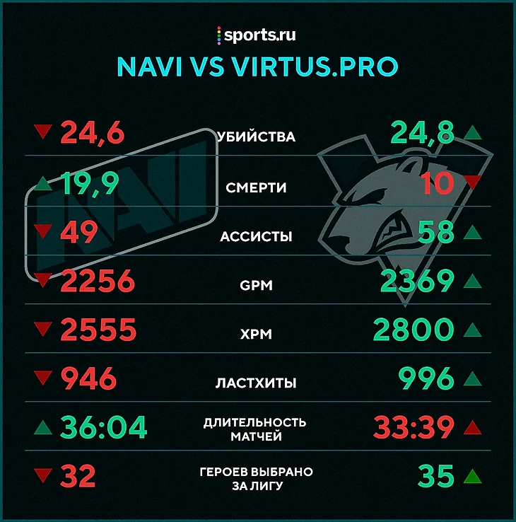 Инфографика NAVI – Virtus.pro: у одного Флая на 400 игр больше, чем у VP вместе. Зато КДА Найтфолла = NAVI в сумме