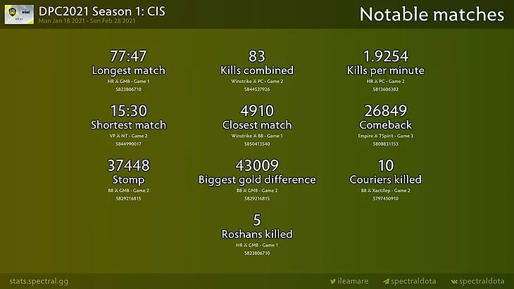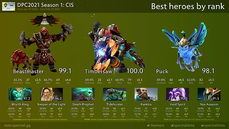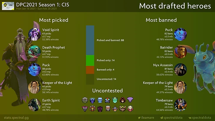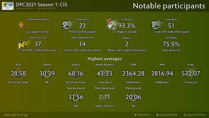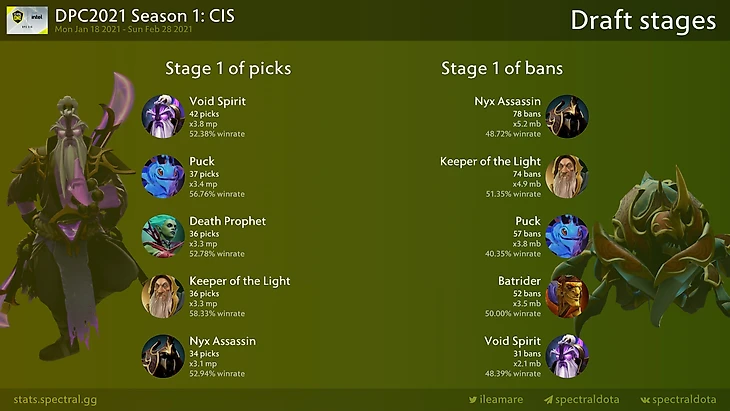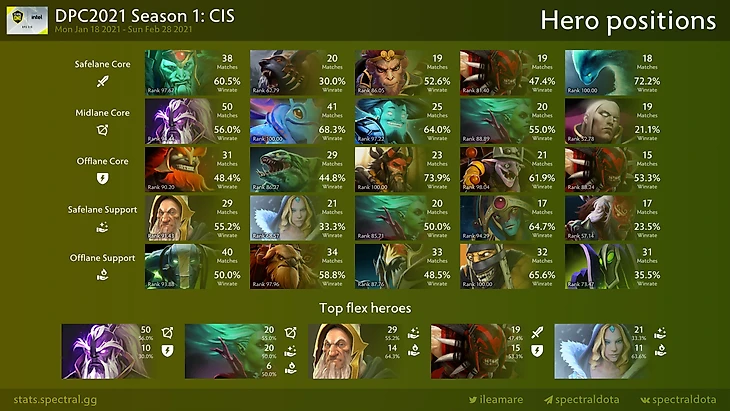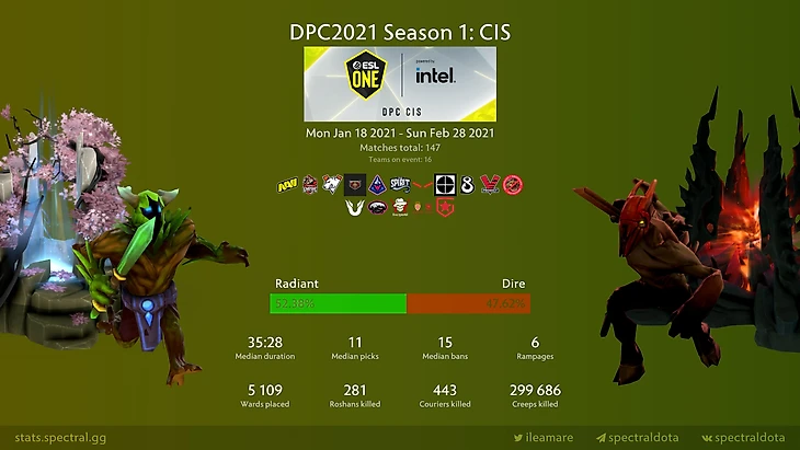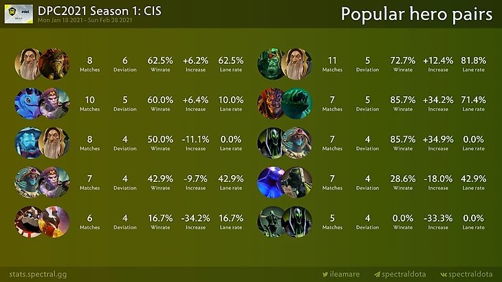 Илья «Leamare» Силаков-Волынский вот уже несколько лет занимается сбором и анализом продвинутой статистики по Доте. К окончанию DPC-лиг он подготовил массивный отчет по мете и командам. Ниже – информация по двум дивизионам СНГ.