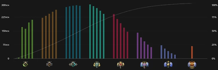 Начнем с того, какой вообще средний рейтинг в доте? Из таблицы видно, что средний показатель где-то в районе рыцаря-1, этот ранг является еще и самым распространенным, почти 300 тысяч аккаунтов. Но очевидно, что большинство геймеров, играющих на рангах герой и ниже, совершенно не интересуется про сценой. Им хочется просто расслабиться вечером под звуки ульты пуджа и срабатывающих мин.