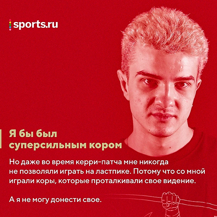 «Во мне ничего не изменилось, но это игра такая. Это 5 на 5, к сожалению. Поэтому я сейчас в ней и не присутствую, – утверждает Алоха. – Я считаю, что я в любом случае был бы супер-сильным кором, и даже до саппорта. Просто когда я играл на коре, со мной была команда, которая не позволяла мне быть полноценным кором. Даже во время керри-патча мне никогда не позволяли играть на ластпике, я никогда не играл тем, чем хочу играть. Потому что со мной играли коры, которые проталкивали свое видение. А я не могу донести свое, хотя вроде и не давал повода во мне разочаровываться. Мне постоянно приходилось что-то доказывать тренерам и всем остальным, но это не воспринималось из-за амбиций других игроков. А я сам по себе не всегда могу проталкивать свое мнение, если оно отторгается слишком агрессивно. Потому я просто опустил руки и перестал это делать».