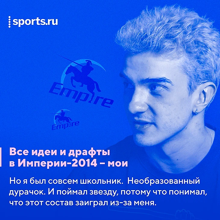 «Когда мы с Максом пошли в Империю и начали всех обыгрывать, все идеи и драфты – это были все мои идеи, – объясняет Алоха. – Я всегда старался что-то новое придумать. Допустим, наш Io, которым никто не играл. Мы начали его брать, потому что я отыграл на нем 30-40 игр на новом аккаунте. Я предложил Тайда – и у нас появилась стратегия Висп+Тайд. Я пытался что-то придумать, а не играть по шаблону. И многие мувы того времени, которые никто не использовал – это были мои спонтанные идеи. Они сами приходили. Я просто видел, что это получается, и мы повторяли это на регулярной основе.