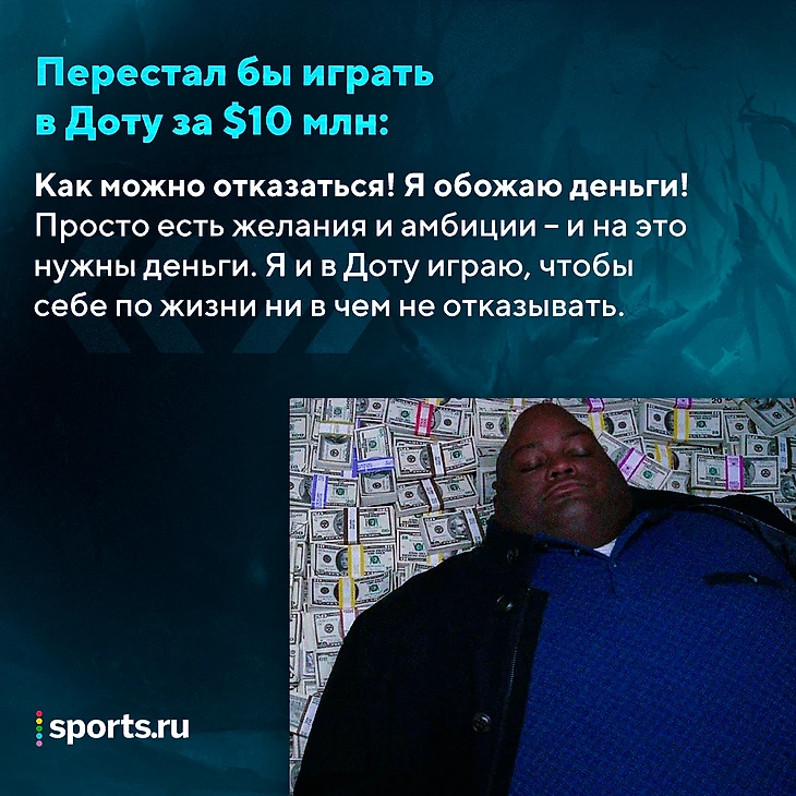 – Если бы тебе прямо сейчас дали 10 миллионов долларов и сказали больше не прикасаться к Доте, ты бы согласился?