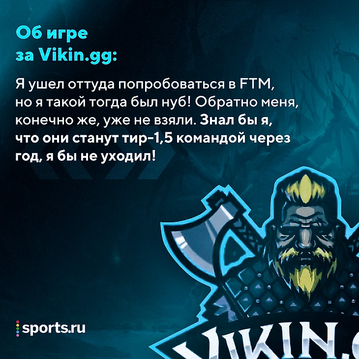 Я ушел из Викингов попробоваться туда, но я такой тогда был нуб! Обратно меня, конечно же, уже не взяли. И это то, о чем я жалею. Знал бы я, что они станут тир-1,5 командой через год, я бы не уходил!