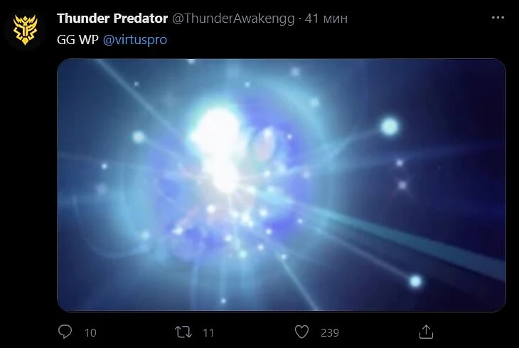 За несколько часов до матча с Virtus.pro аккаунт Thunder Predator выкладывает шаблонный пост с фотографией Mnz в духе «готовимся к матчу» (сейчас твит удален). На нем видно, что керри тренирует Виспа!