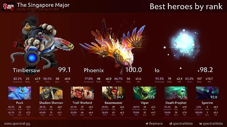 Я несколько удивлён Спектре в топе героев по рангу, но 4 игры с 100% винрейтом всё же дают о себе знать.