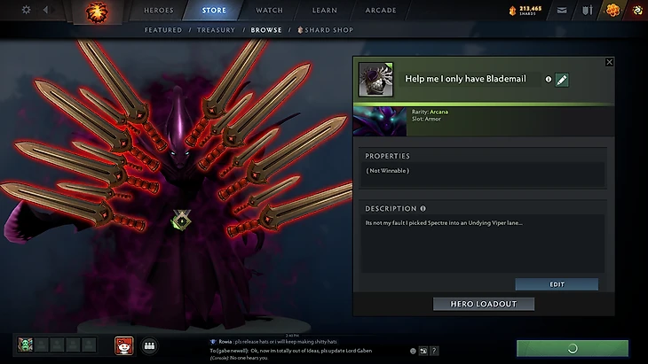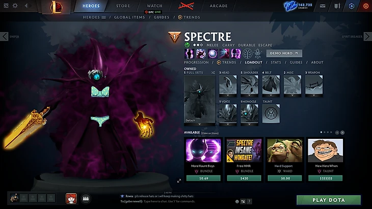Спектра победила в ежегодном голосовании за следующий предмет редкости Аркана в Боевом Пропуске к The International 2020. Пусть сам турнир и был отложен, шмотку разрабатывали и они уже почти готова. Об этом можно судить из упоминаний в файлах и даже багов интерфейса.