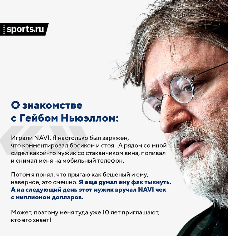 «Туда приходили какие-то люди, выпивали, – делится воспоминаниями Вилат. – Во время одного из матчей я уже настолько был заряжен, что комментировал босиком и стоя. Играли наши NAVI, я дико прыгал и орал. А рядом со мной сидел какой-то мужик со стаканчиком вина, попивал и снимал меня на мобильный телефон. Потом я понял, что я прыгаю как бешеный, и ему, наверное, это смешно. Друзьям потом расскажет. Я еще думал ему фак тыкнуть. А на следующий день этот мужик вручал NAVI чек с миллионом долларов».
