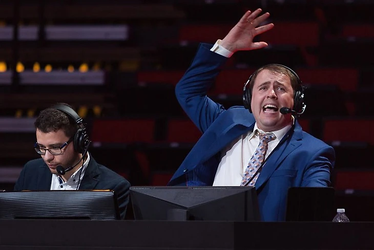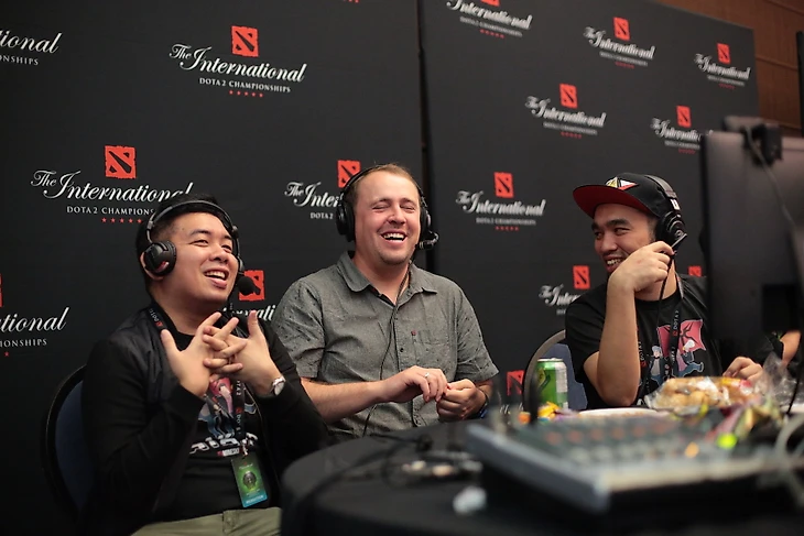 А пока Вилат в прямом эфире называл игроков «инвалидами», рассказывал анекдоты и живо переживал каждое поражение СНГ-команд, англоязычная трансляция начала преображаться. Комментаторы сменили растянутые футболки на рубашки, а вместо уютных худи в кадре появились пиджаки. Они уже не сидели развалившись в креслах, а уверенно стояли за стойкой перед камерой. В Dota 2 развивалось все – росли цифры зрителей под трансляциями, взрослели мальчишки перед мониторами, телевидение стало заигрывать с киберспортом, привлекать новых партнеров, а тот самый мужик, который когда-то снимал Вилата на телефон на TI, теперь открывал турнир на 18 млн долларов. Все это значило, что росла ответственность каждого, кто выходил в эфир.