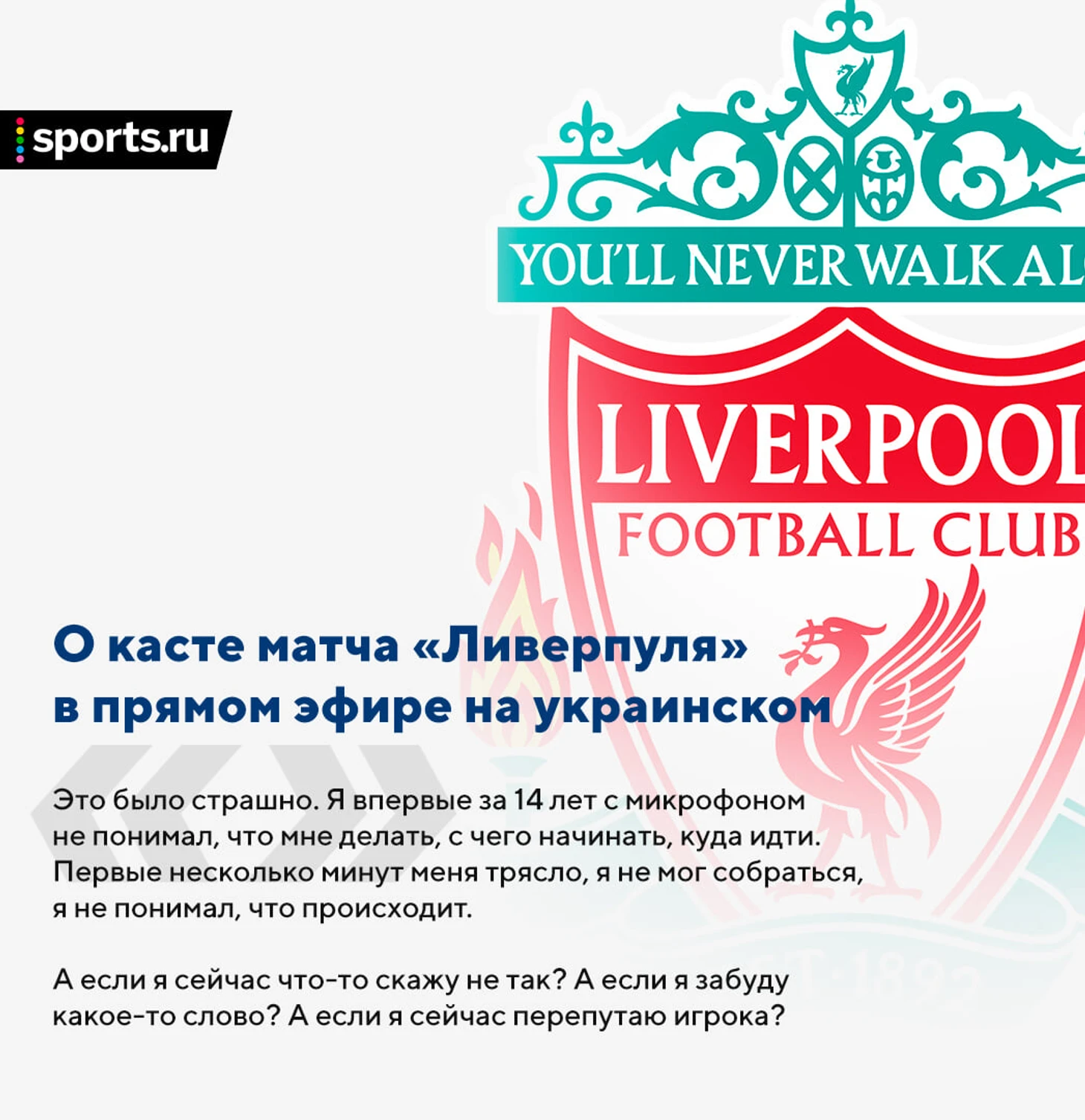 «Отказываться от этого было глупо, – делится он и даже меняется в голосе. – При том, что я никогда в жизни не работал на украинском языке. Это был мой первый в жизни эфир на украинском языке! Работы было много, поэтому толком подготовиться у меня не получилось. Начал только за день до матча. Да, я смотрю «Ливерпуль», составы я знаю, игроков я знаю. Но я был много к чему не готов!»