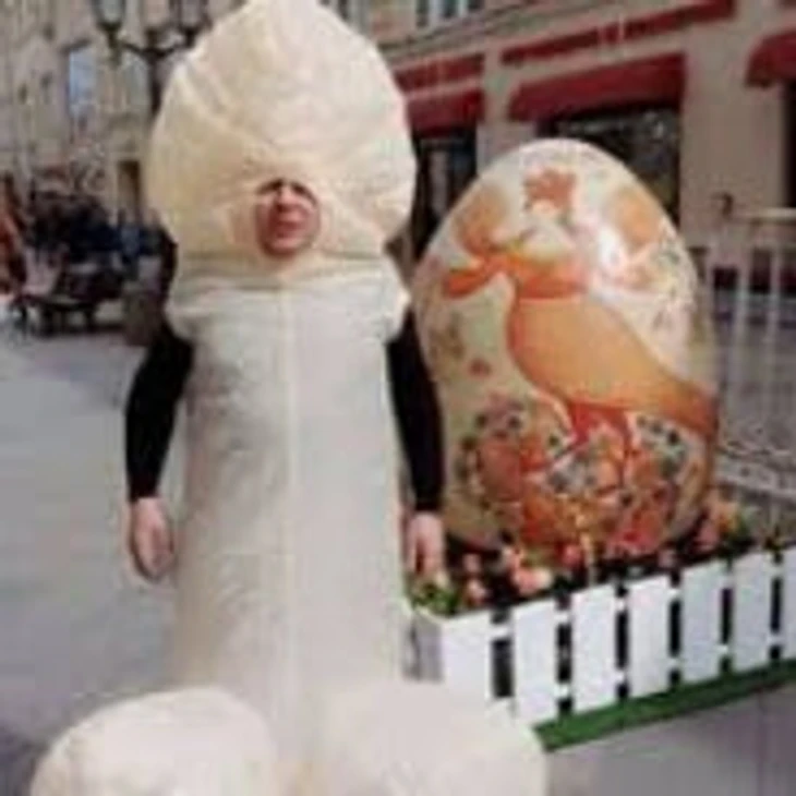 А на смурфе у него человек в праздничном кокошнике. Наверное.