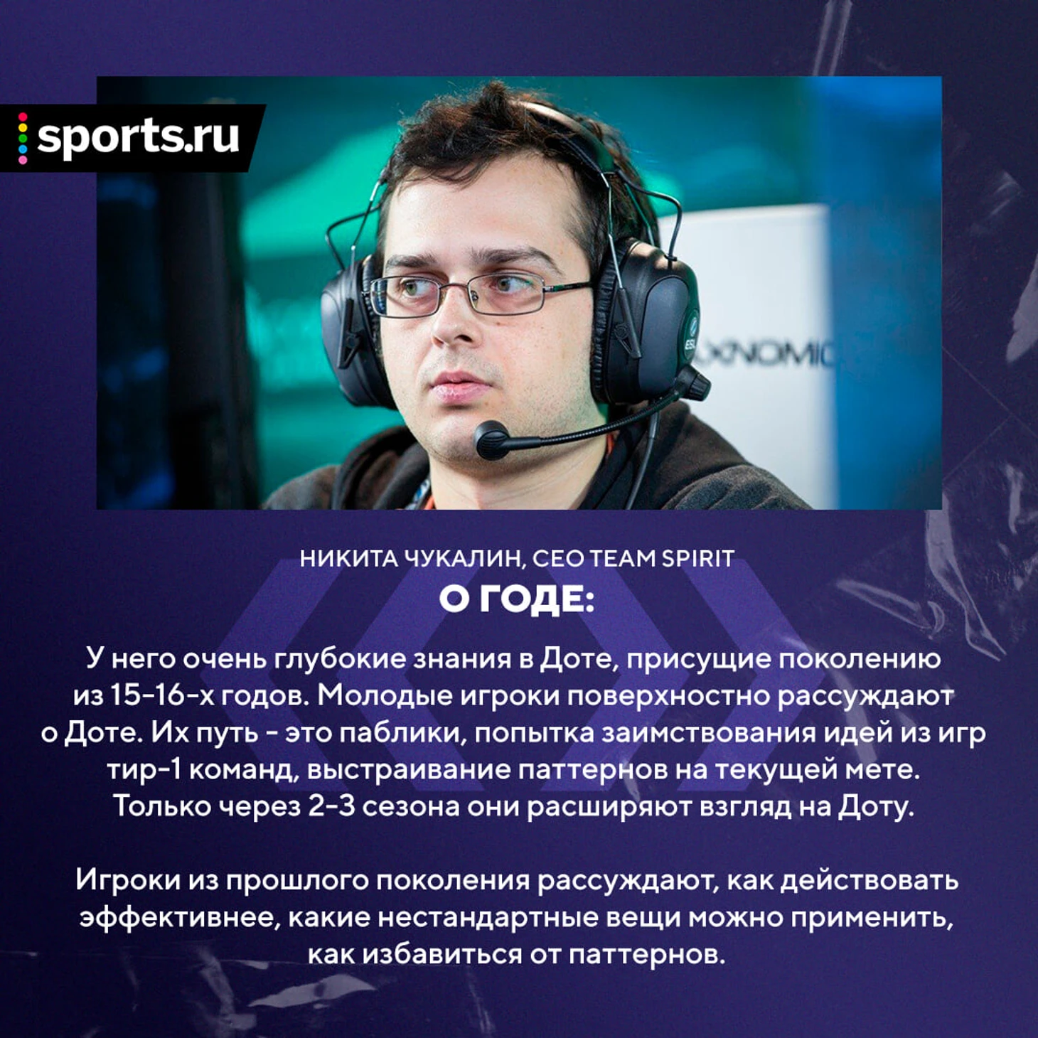 Сережа обладает очень нестандартным подходом к работе в команде, к выстраиванию стратегических и тактических элементов. У него очень глубокие знания в Доте, те самые, которые присущи поколению из 15-16-х годов. Молодые игроки, даже успешные и играющие на мейджорах, довольно поверхностно рассуждают о Доте. Их путь – это паблики, попытка заимствования идей из игр тир-1 команд, выстраивание паттернов на основании текущей меты и только через 2-3 сезона они начинают расширять свой взгляд на доту. Игроки из прошлого поколения стараются больше рассуждать о том, как действовать более эффективно, какие нестандартные вещи можно применить, как избавиться от паттернов в своих тактиках и стратегиях.