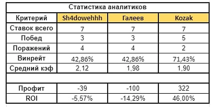 Три недели – рабочая дистанция для подведения базовых итогов. По итогам первых прогнозов Sh4dowehh и Роман Галеев вышли в небольшой минус, а Владислав Лазуренко играет в плюс, но до конца лиг все может поменяется еще несколько раз. Все ставки и статистику можно найти в специальной таблице.