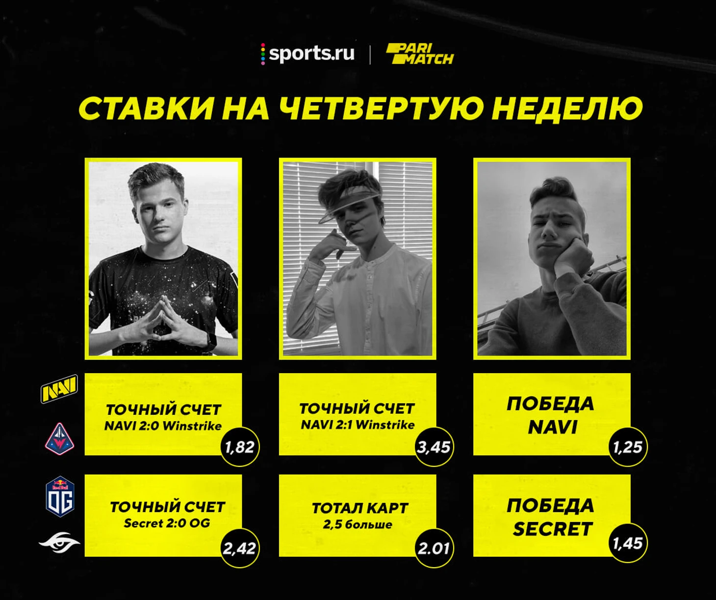 На мой взгляд очевидно, что NAVI должны забирать серию, вопрос лишь в том, отдадут ли они карту. Я поставлю на точный счет 2:1 в их пользу – коэффициент 3,45 очень вкусный, Winstrike любят удивлять на драфте, а NAVI могут поплыть в любой момент».