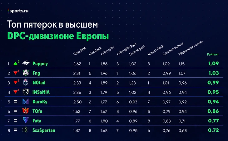 – Только Puppey из всей пятерки идет выше средней планки в таблицах по ролям и входит в одну из общих топ-10.