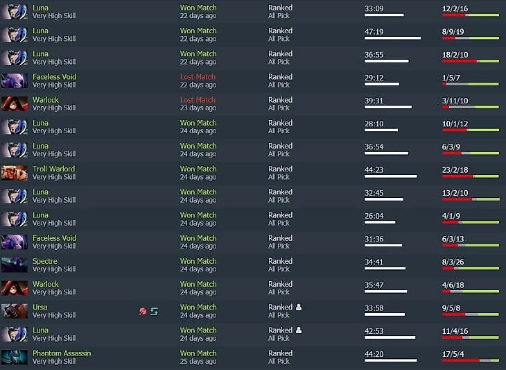 Например вчера у противника мидер Хускар 7 побед подряд, уже думал ясно, смурф походу, но у нас была дровка снайпер и акс. В итоге победа, но был бы шаг в сторону и не прыгни удачно акс 2-3 раза, то 100% луз, + к этому нужно добавить так себе команду Хускара.