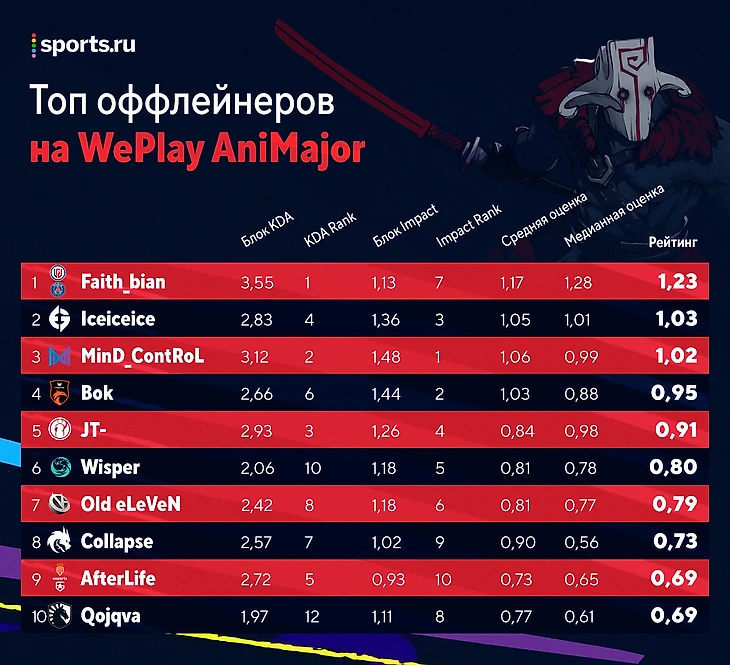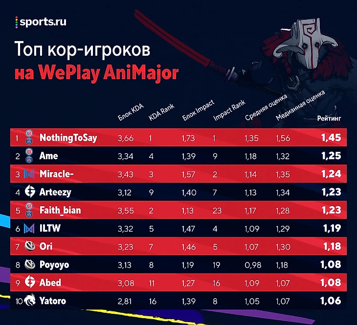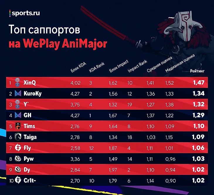 Подведем итоги групповой стадии. К WePlay AniMajor мы немного изменили концепцию. Теперь качество игры саппортов оценивается с помощью более универсальной формулы, что позволило создать полноценный общий рейтинг. Пишите в комментах, как вам обновленная система оценок! Все замечания будут учтены.