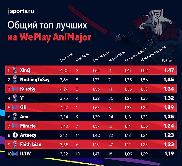 – 4 игрока Нигмы вошли в общую десятку лучших, а оба саппорта – в топ-5.
