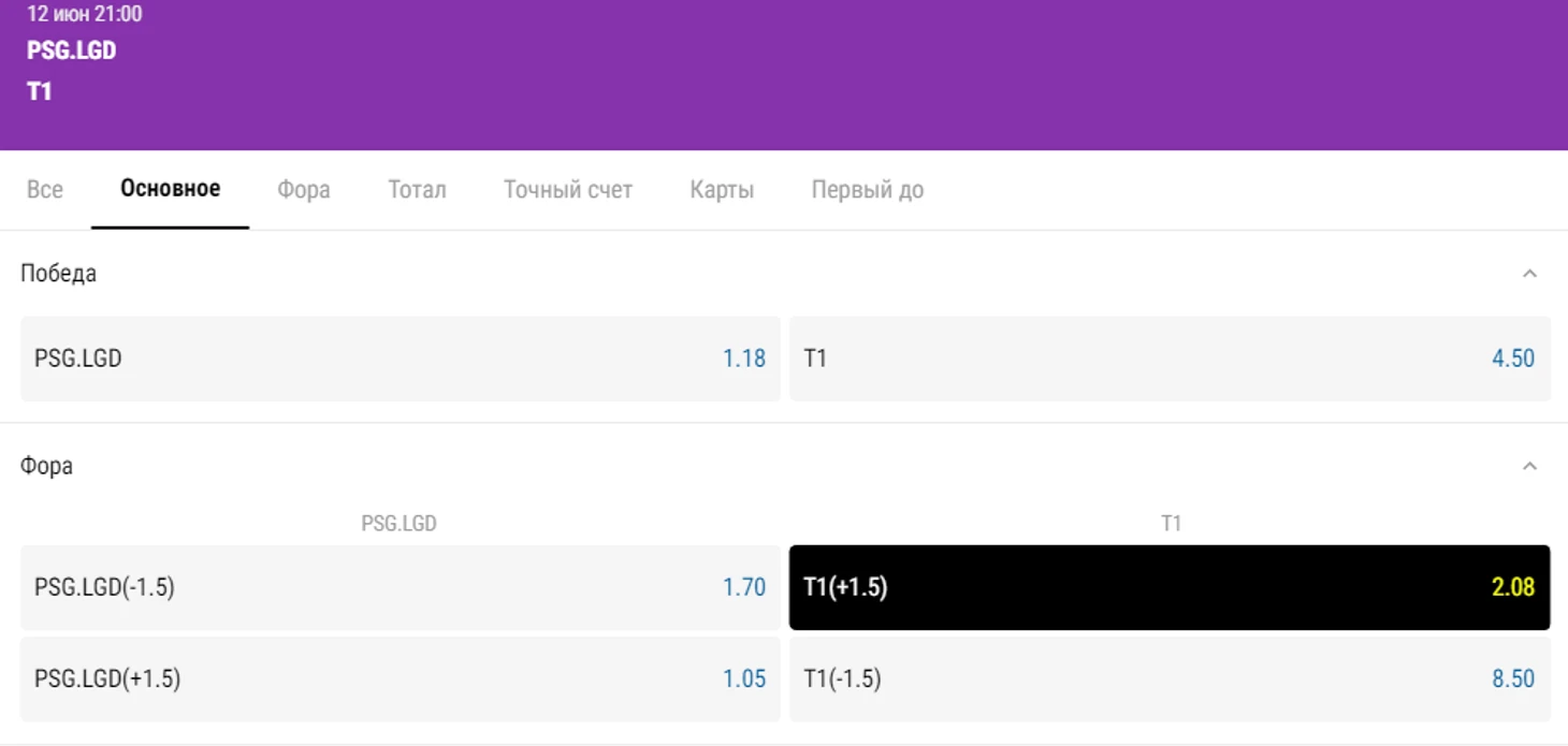 T1 – PSG.LGD: T1 выиграют одну карту за 2,08