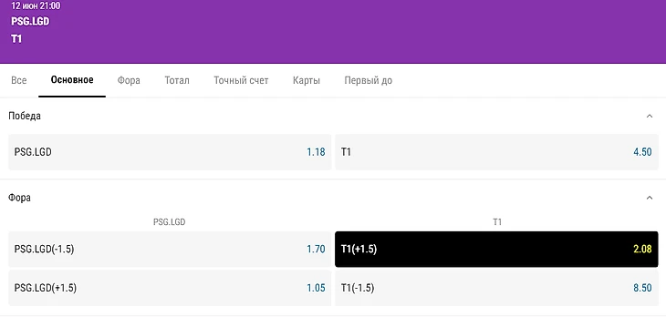 Ставки на мейджор: T1 возьмет карту у PSG.LGD