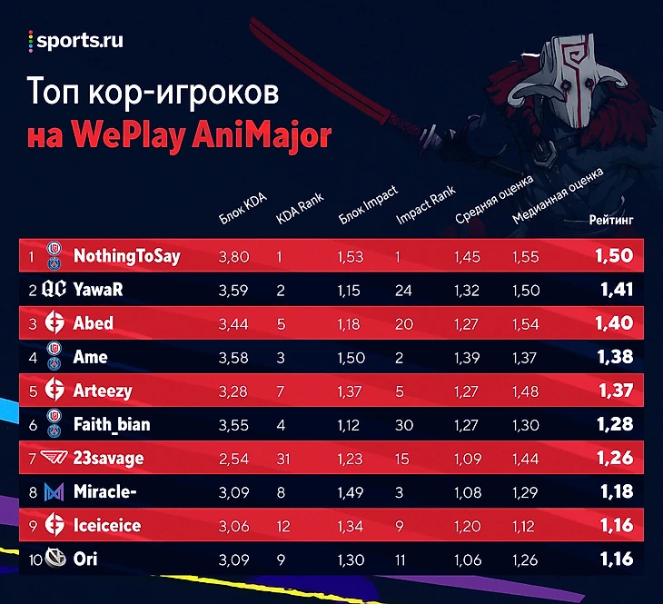 Пора проанализировать финальную статистику турнира. К итогам WePlay AniMajor мы обновили концепцию рейтинга. Теперь качество игры дотеров оценивается с помощью более универсальных и точных формул, что позволило создать полноценный общий рейтинг. Пишите в комментах, как вам обновленная система оценок! Все замечания будут учтены.