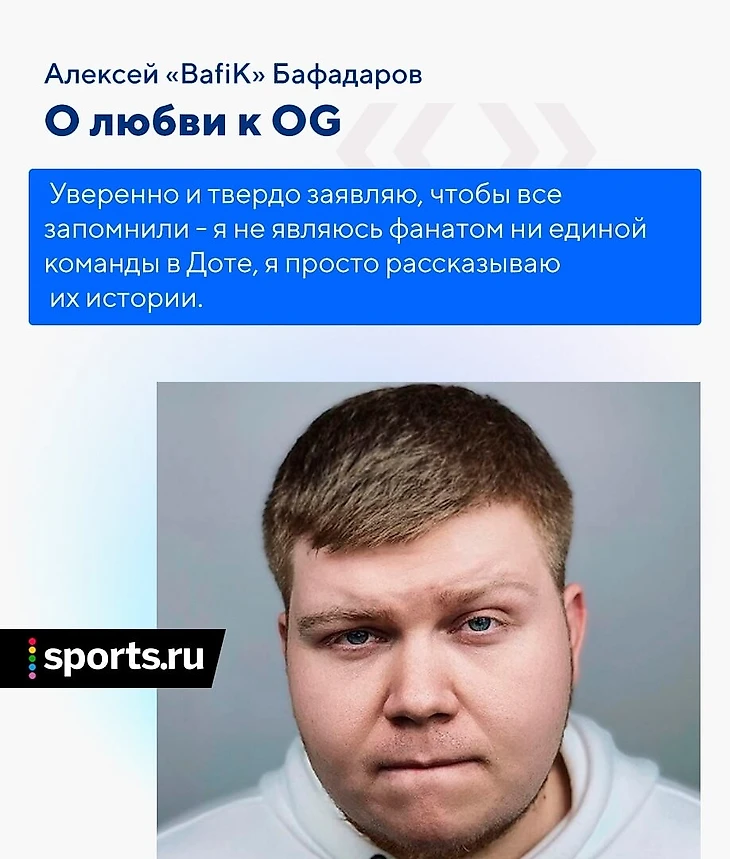 Я не люблю OG, но это клуб, который дважды выиграл Инт, и я уважаю это достижение. Я не являюсь фанатом ни одной команды в Доте и никогда им не был. Я не хайпил OG как команду, которая будет всех разрывать, я просто напоминал людям, что играют действующие чемпионы Инта и не стоит мешать их с грязью.