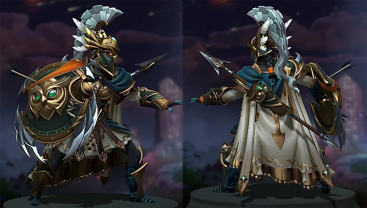 Как и Афина, Фантомка вооружилась щитом и копьем, а ее шлем со светящимися глазами будет прекрасно смотрется в портрете героя. Единственное, над чем Valve могли бы тут пошаманить, так это над цветовой гаммой – для Фантомки в сете слишком уж большое изобилие белого и золотого.