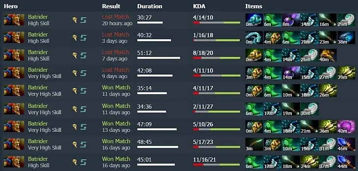 2. Мало кто знает (по крайней мере, на моем рейтинге), как правильно использовать стики против Бэтрайдера. За эти 9 игр я постоянно видел как игроки с 10 и даже 20 стиками продолжали копить их и ловить мой напалм.