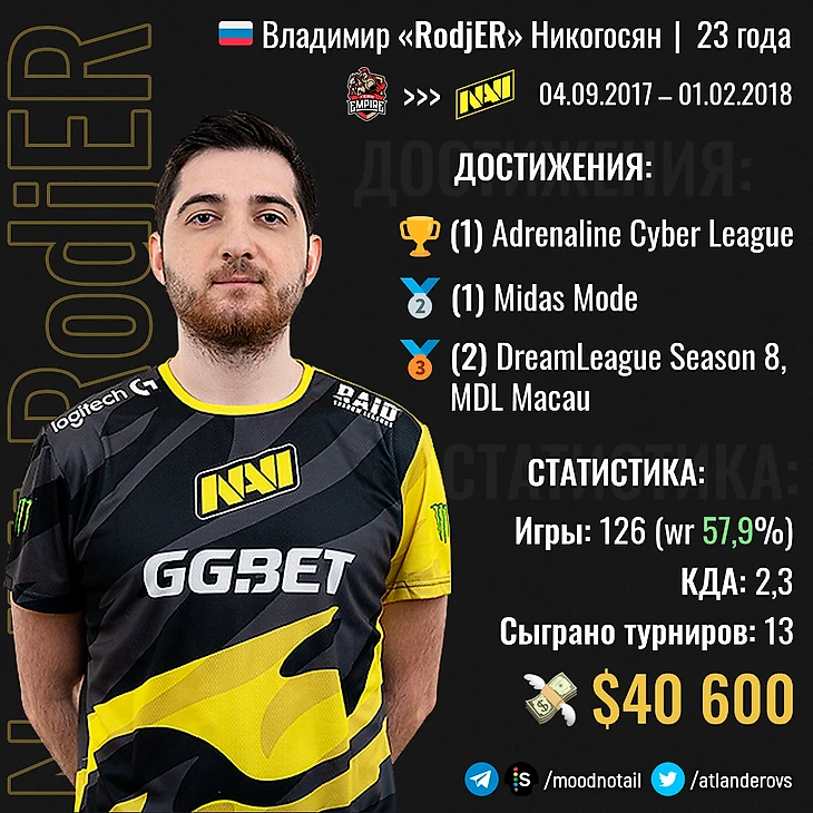 Второй приход в «NAVI» получился для Роджера более рабочим. Он подошёл к нему в статусе состоявшегося игрока — двукратного чемпиона мажоров, МВП ESL One. Всё ещё ТОП, но с неоднозначными результатами за последний год.