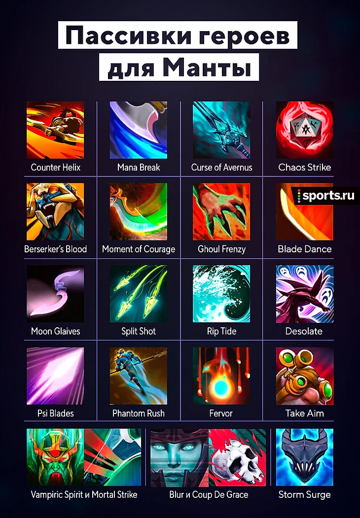 2. Иллюзии от Манты работают с некоторыми пассивными способностями героев, на которых собирается Манта (хотя бы иногда):