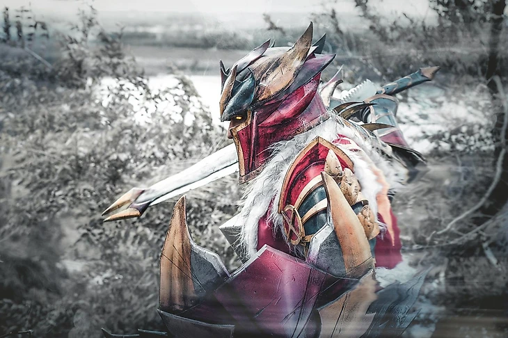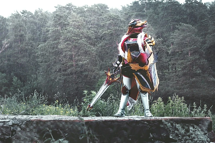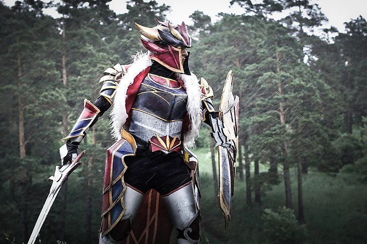 Cosplay на Dragon Knight. Рыцарь в броне дракона